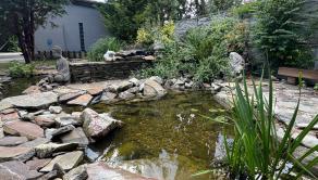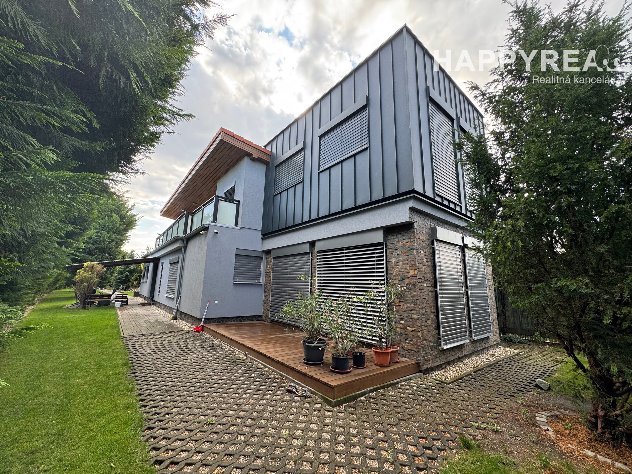 Záhrada je automaticky zavlažovaná a udržiavaná robotickou kosačkou, čo zaručuje minimálnu náročnosť na údržbu.