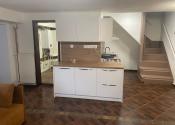 Dispozícia: prízemie: vstupná predsieň s úložnou skriňou, kúpeľňa s toaletou, so sprchovacím kútom, práčka, priestranná obývacia izba s kuchyňou, samostatná izba, ďalšia kúpeľňa s toaletou a sprchovacím kútom, poschodie: veľká, priechodná izba, šatník, menšia izba.