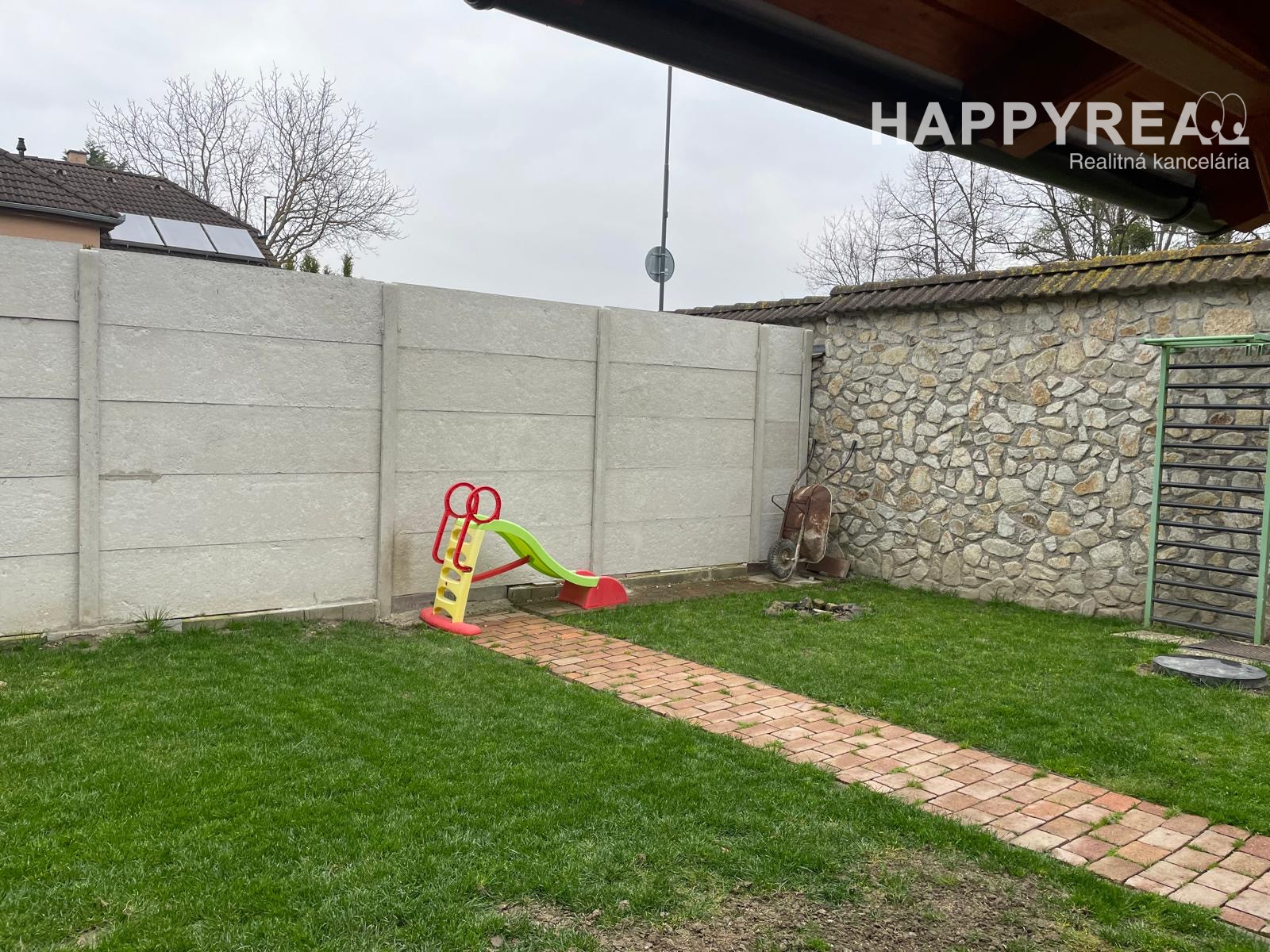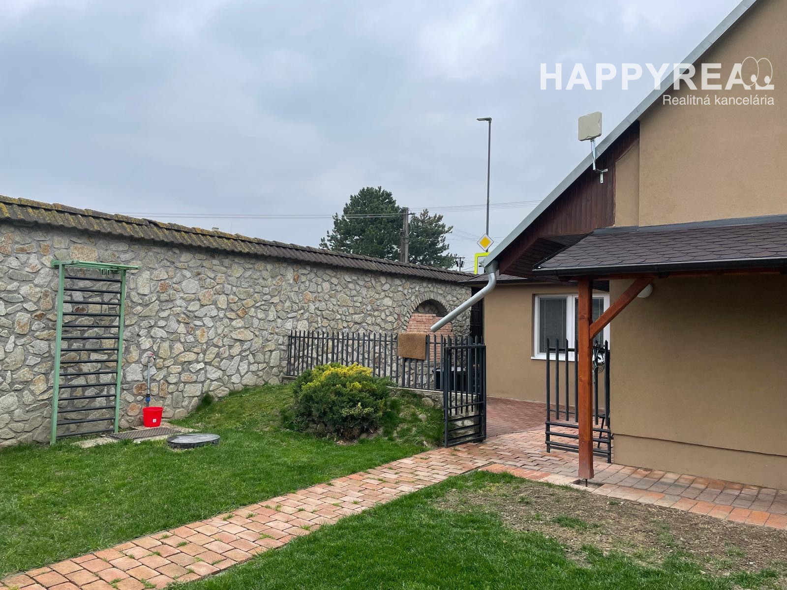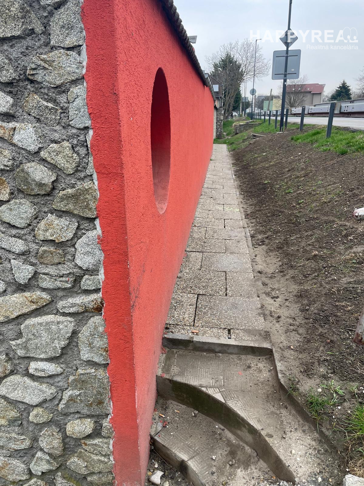 Parkovanie na ulici, prístup do domu po chodníku popri plote (viď foto). Nevhodné pre detský kočík a invalidný vozík.