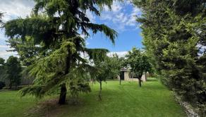 Pozemok o výmere 1 838 m² ponúka dostatok priestoru pre komfortné bývanie aj oddych. Nachádza sa na ňom samostatný parkovací domček so skladom s výmerou 48 m². Celý pozemok je profesionálne upravený do parkovej záhrady s množstvom vzrastlých drevín, jazierkom s rybami rybami, a murovaným altánkom, ideálnym na posedenie s rodinou či priateľmi.