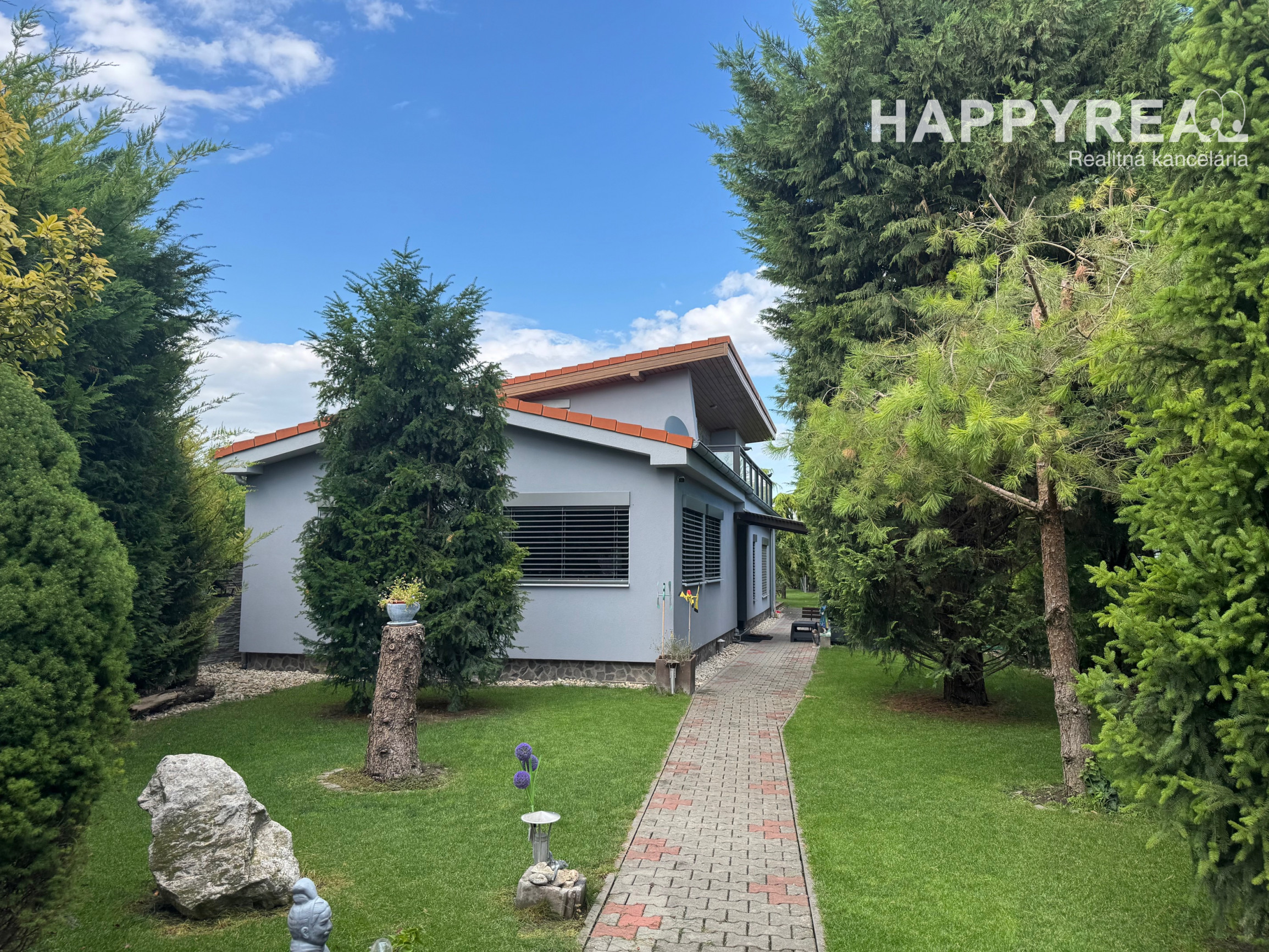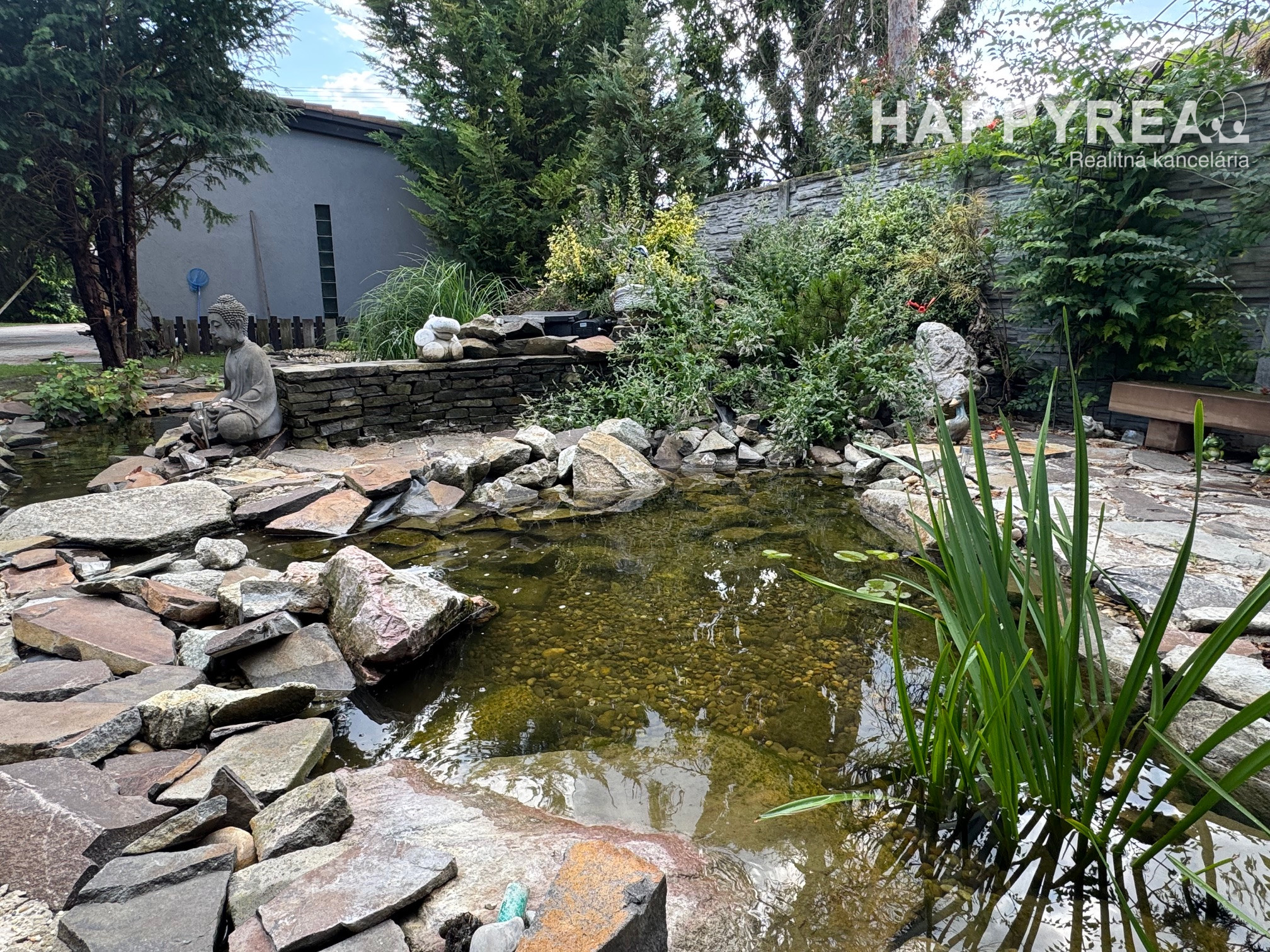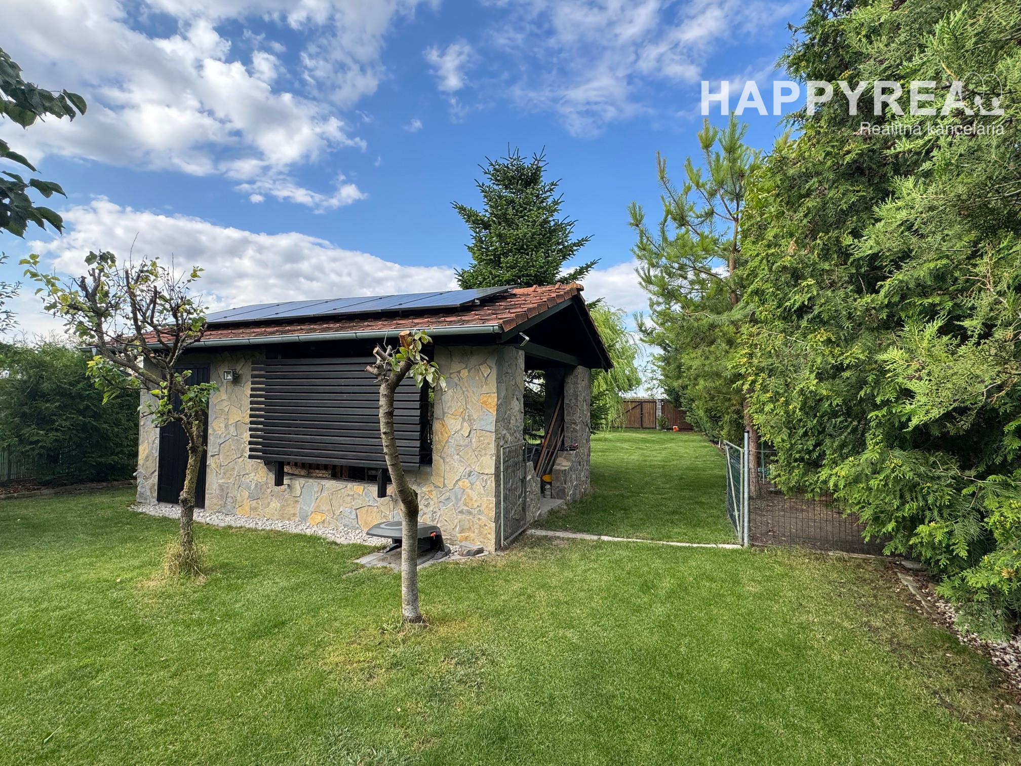 Záhrada je automaticky zavlažovaná a udržiavaná robotickou kosačkou, čo zaručuje minimálnu náročnosť na údržbu.