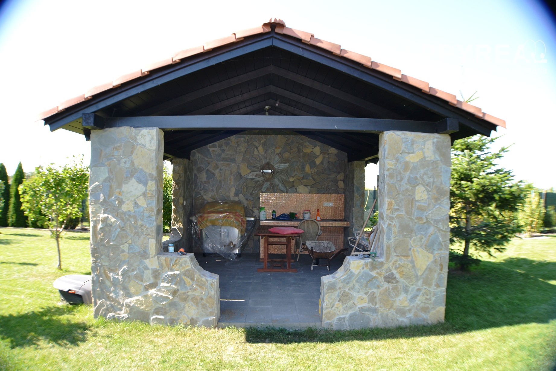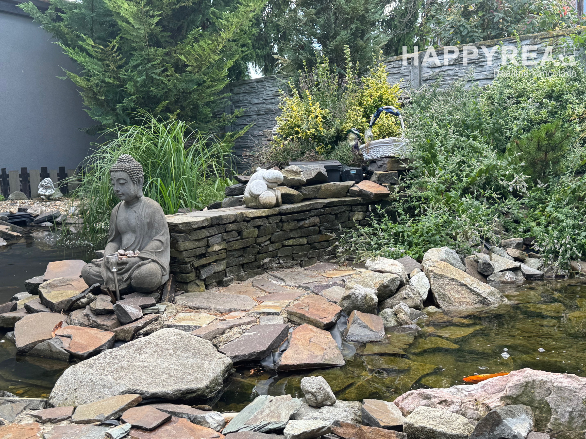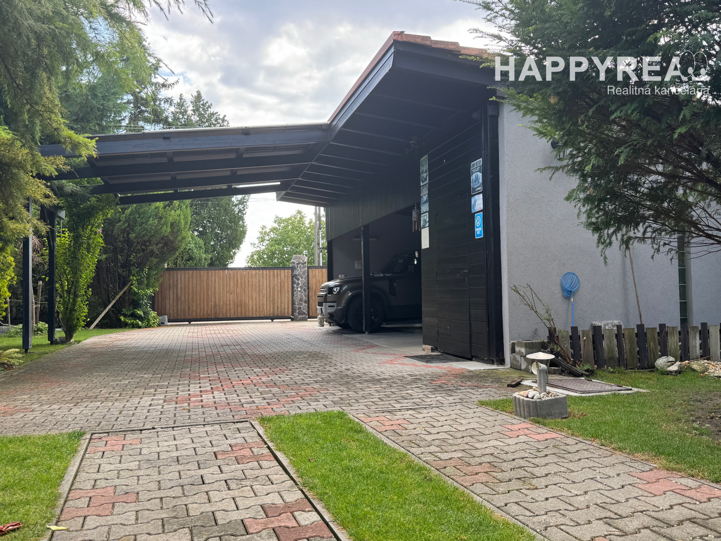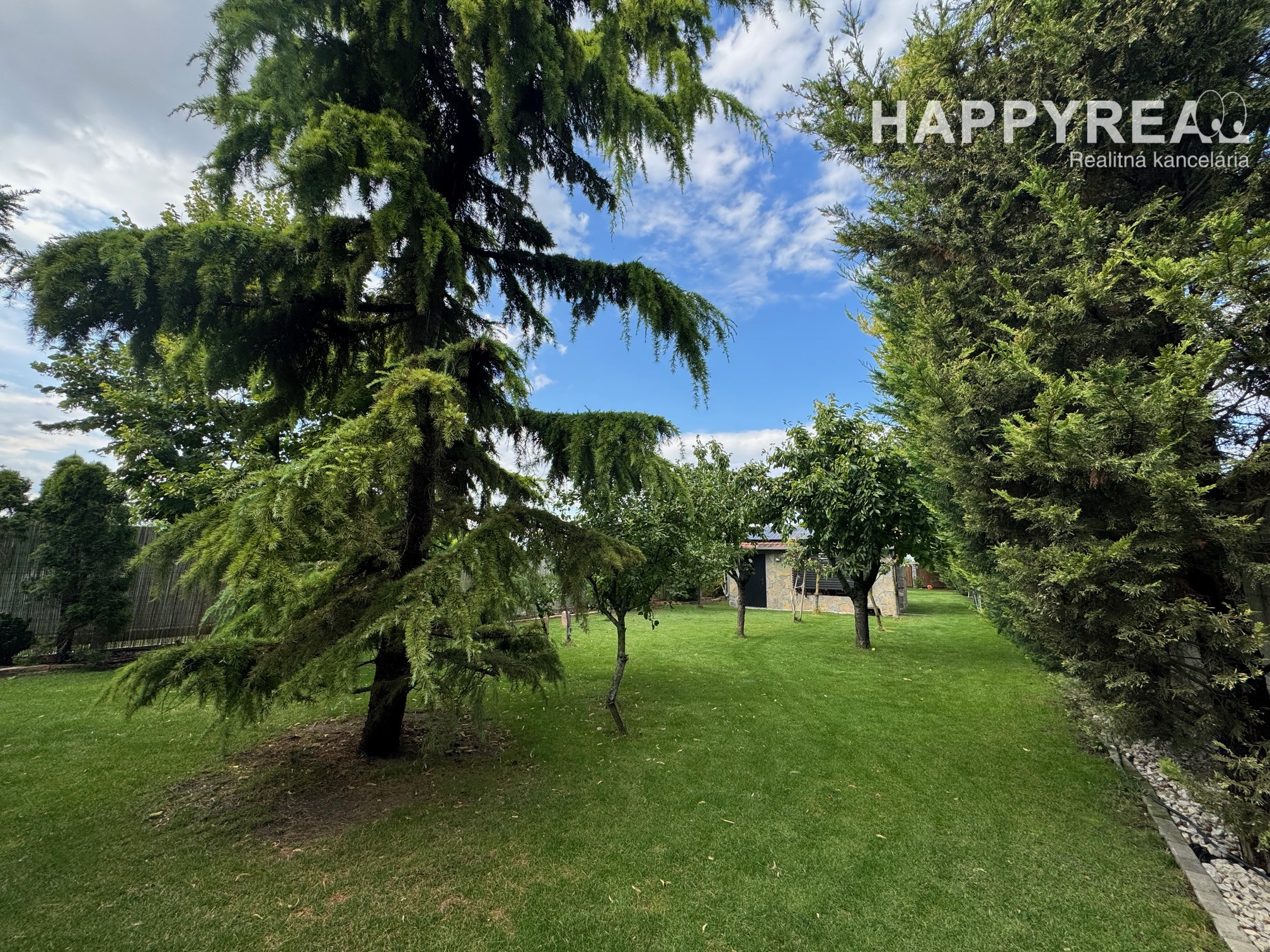 Záhrada je automaticky zavlažovaná a udržiavaná robotickou kosačkou, čo zaručuje minimálnu náročnosť na údržbu.