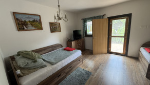 Poschodie: veľká spálňa s výstupom na terasu, menšia spálňa, kúpeľňa s WC a sprchovým kútom